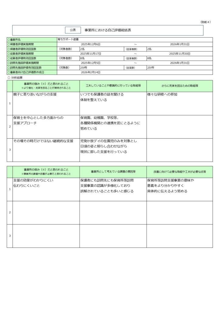 保育・保護者評価・集計結果→